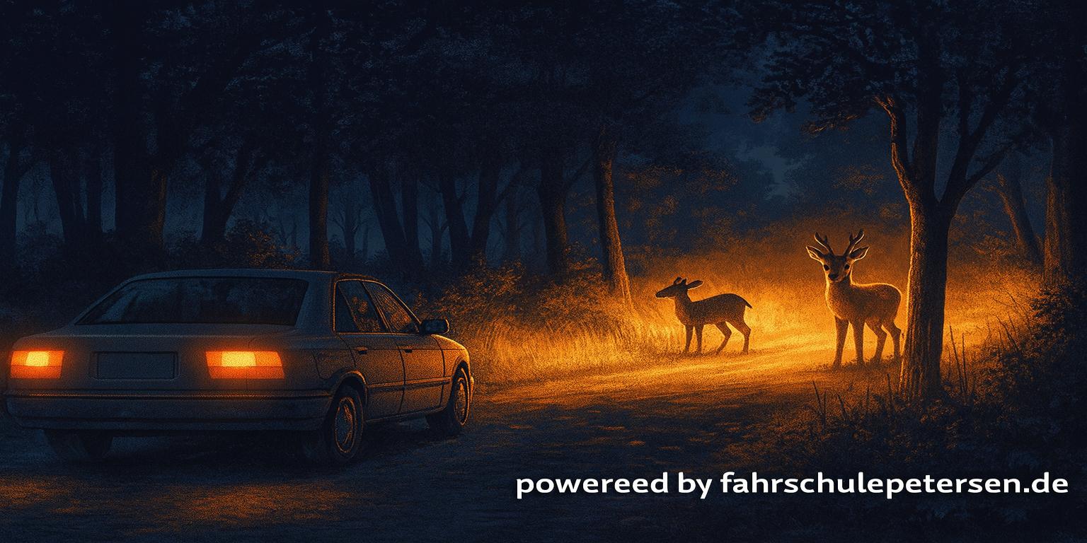Warum solltest du bei Wildwechsel niemals ausweichen? (Antwort: Um die Kontrolle über dein Fahrzeug zu behalten.)